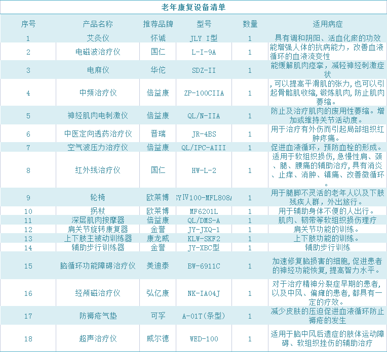 我们不得不承认的是老年人的自身抵抗力和痊愈能力确实大不如前,做好预防工作很关键,对于已患疾病积极采取治疗,配合康复措施同样重要。今天我们就总结了一些老年疗养康复的设备清单,来看看对你有没有帮助吧!