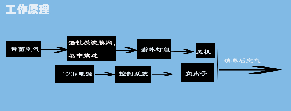 空气消毒机采用高强度型紫外线杀菌灯,负离子发生器、等离子发生器、臭氧发生器,活性炭过滤消毒方式可用于有人在条件下的空气消毒(无臭氧时),壁挂不占用空间,配备遥控器。