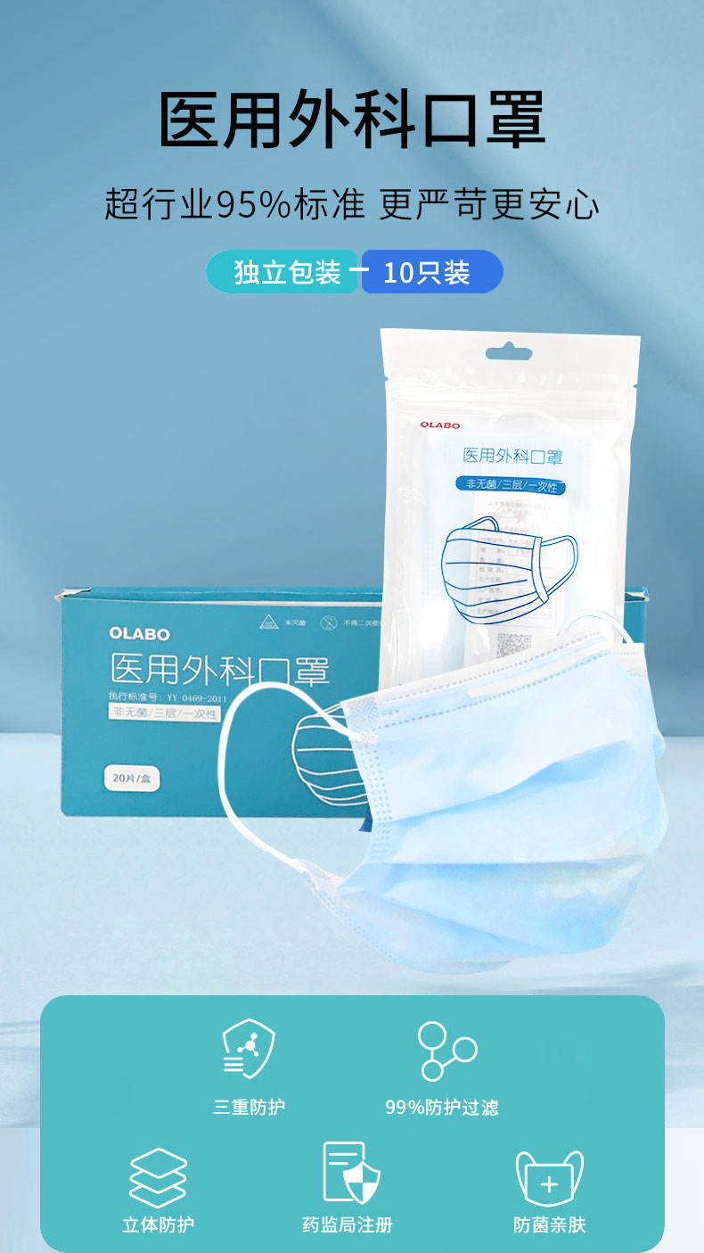 欧莱博 医用外科口罩 三层防护 独立包装