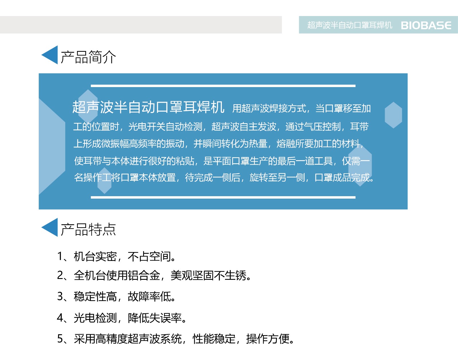 采用高精度超声波系统,机台实密,不占空间;稳定性高,操作方便