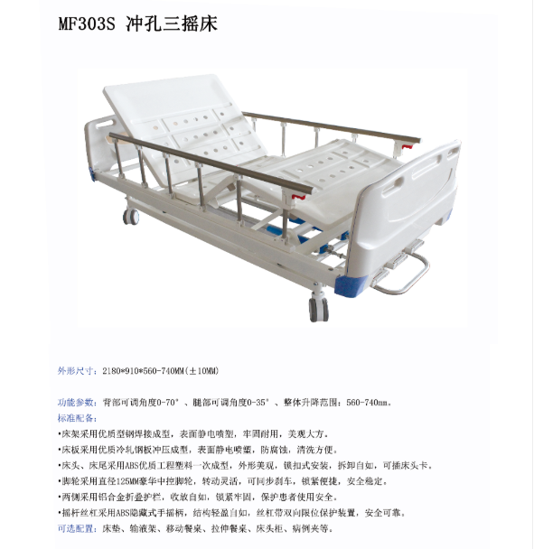 当前位置 > 主页 > 产品专区  > 康复理疗 > 病床 > 欧莱博MF303S冲孔三摇床