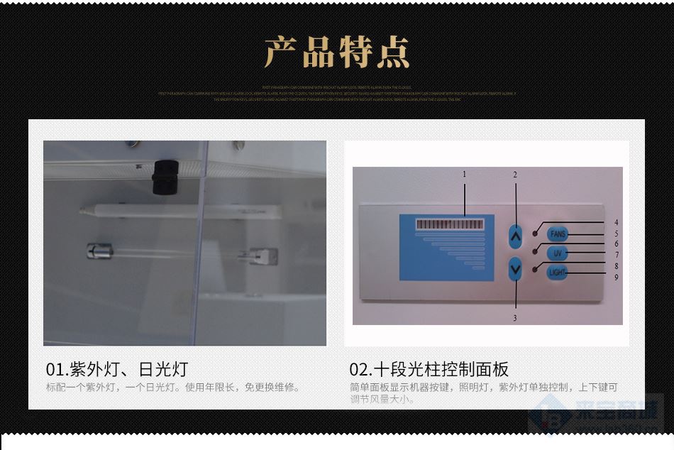 1.11紫外灯与风机、日光灯互锁功能,即当风机、日光灯工作时,紫外灯无法开启,保护操作人员。