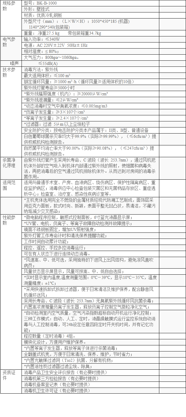 博科BK-B-1000空气消毒机