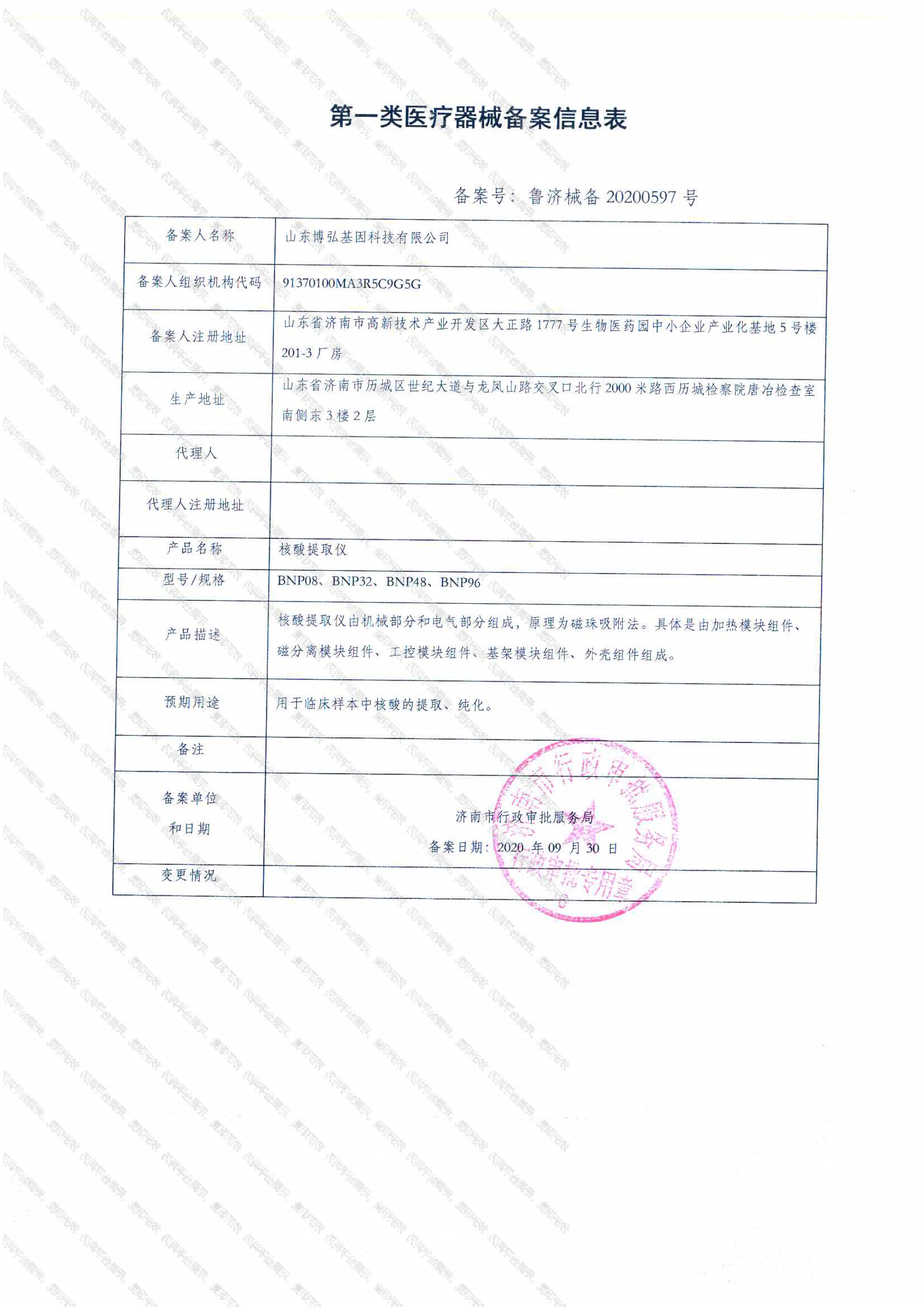 所属类目:6840临床检验分析仪器 一类批准文号:鲁济械备20200597号