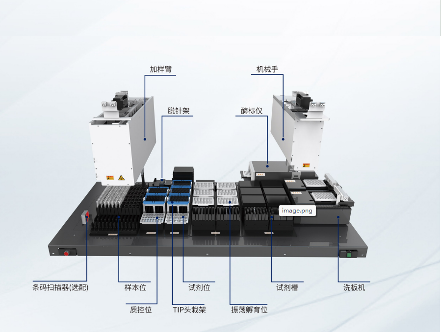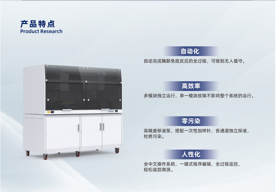 • 简 介:全自动完成ELISA实验,包括标本分配、试剂加注、孵育、洗板、读数