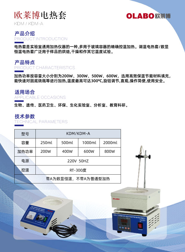 电热套是实验室通用加热仪器的一种,由无碱玻璃纤维和金属加热丝编制的半球形加热内套和控制电路组成,多用于玻璃容器的精确控温加热。