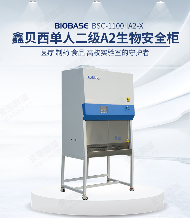 鑫贝西单人二级A2生物安全柜BSC-1100IIA2-X采用30%外排,70%循环,可同时采用脚踏控制、按键控制或遥控控制,玻璃门升降到安全操作高度时,自动停止升降,使操作更加方便;且玻璃门升降时不用直接接触玻璃,使实验人员更安全
