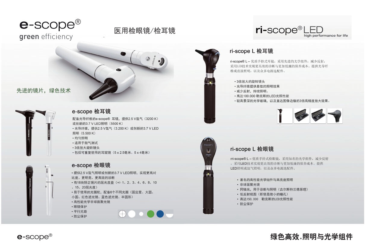里斯特直流检眼镜:眼镜保护、平行光路、防尘保护。
