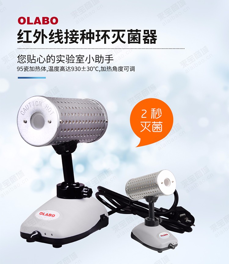 较高温度930℃±30℃,接种环仅需2秒灭菌,有效减少使用者工作强度,而市场同产品温度只有800℃左右,灭菌需7-8秒