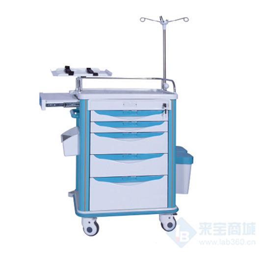 抢救车采用ABS一体注塑成型台面,易清洁,四柱承重,有中控锁