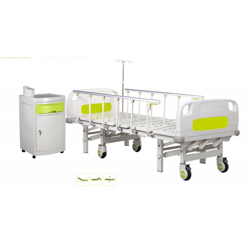 这款床的升降是采用了手动升降功能,可以根据医院对病床功能需要自行调整选择最佳的功能。