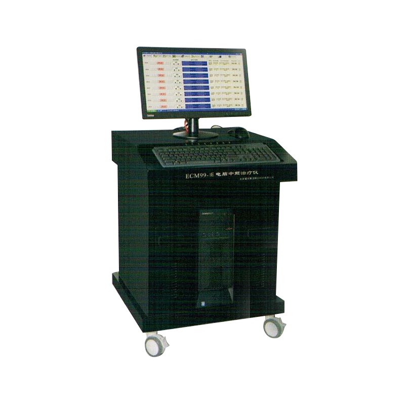 ECM99-IE型电脑中频治疗仪由主机(含显示器)、台车、电极和输出线组成