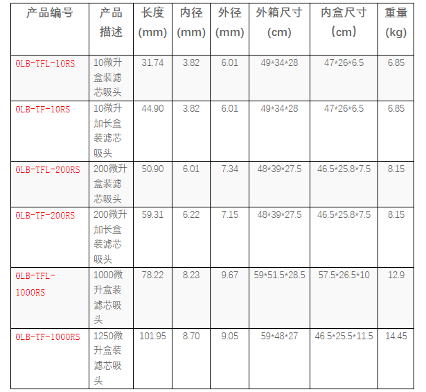 特性:低吸附无DNase无RNase无热原加长